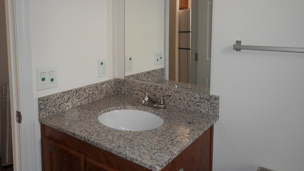 - Upscale Surfaces: Granite countertops with a single eased edge and coordinating 4” granite backsplash.